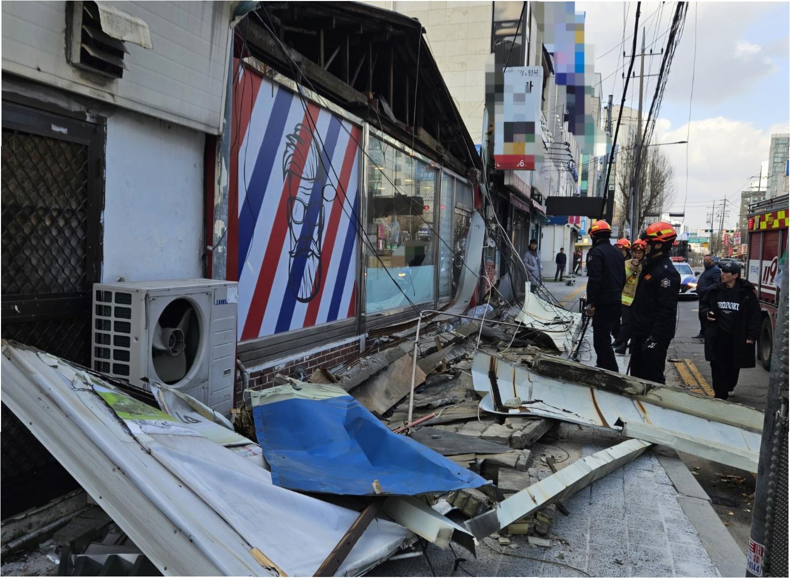 사고 현장은 어제의 참혹한 모습을 그대로 간직하고 있습니다. 아직 수습이 시작되지 않아, 노란색 경찰 출입통제선이 주민들의 통행을 막고 있습니다. 건물에서 떨어진 간판들은 제자리를 찾지 못한 채 바닥에 널려 있고, 무너진 벽돌과 철제 구조물 또한 어지럽게 흩어져 있습니다. 어제 오후 2시 20분쯤 경기 의정부시 호원동에서 20대 남성 1명이 숨지는 안타까운 사고가 발생했습니다. 강풍에 떨어진 간판이 피해자를 덮치면서 큰 부상을 입었고, 간판과 함께 있던 철근 구조물도 함께 떨어진 것으로 보입니다.