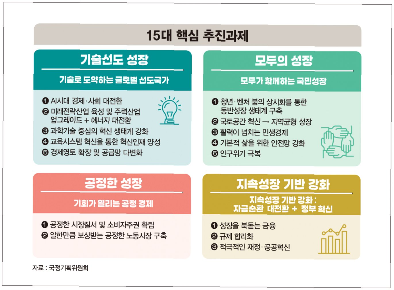 국민성장펀드는 국민의 자산 형성을 지원하고, 혁신 기업에 투자하여 국가 경제 발전에 기여하는 펀드입니다. 장기적인 투자, 가치 투자, 사회적 책임 투자를 통해 지속 가능한 성장을 추구하며, 미래 기술, 친환경 에너지 등 유망한 분야에 투자합니다. 국민 누구나 참여할 수 있으며, 더 나은 미래를 위한 투자를 시작할 수 있습니다.
