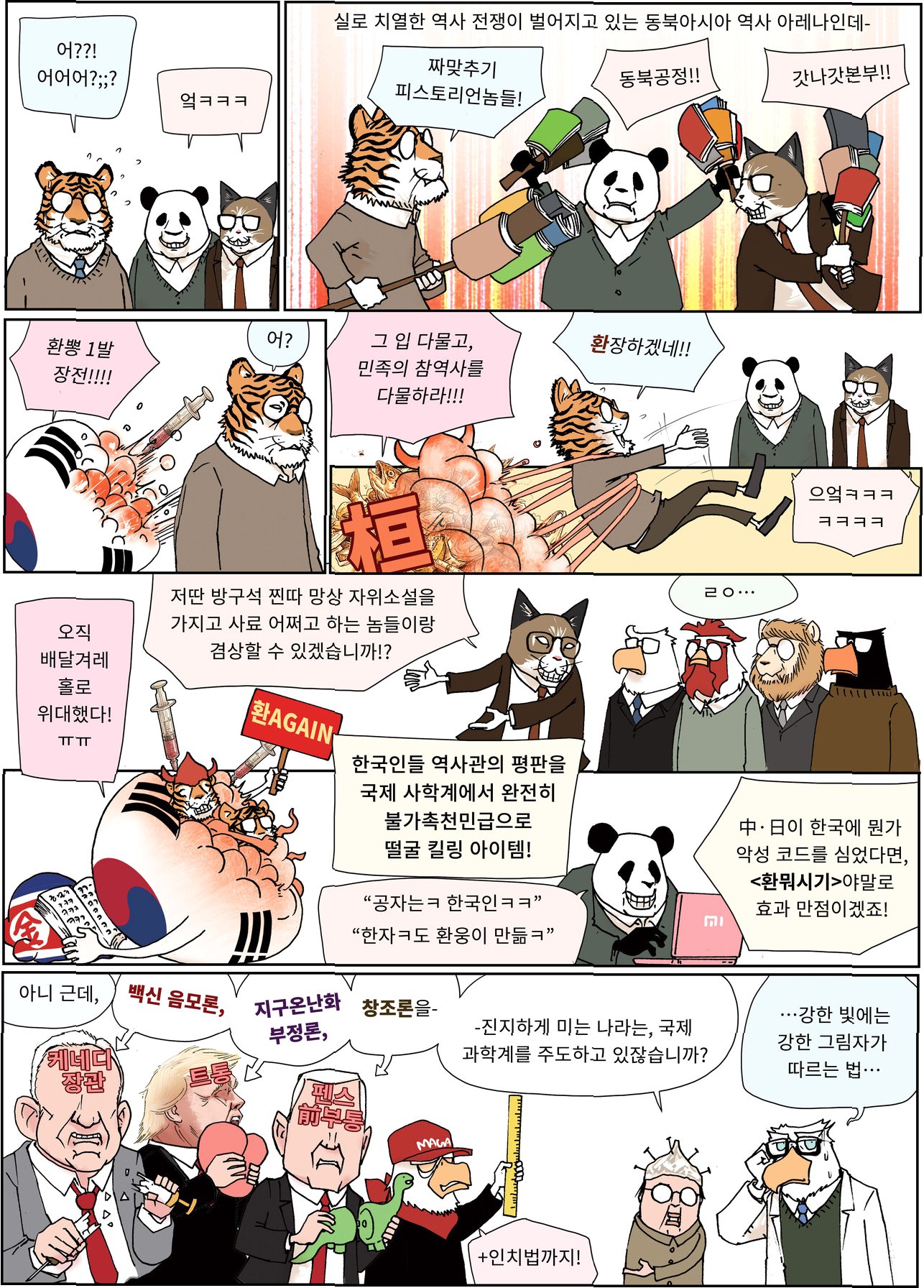 A.시사 풍자와 서브컬처의 독창적인 조합, 유쾌한 유머, 날카로운 시사 풍자가 굽시니스트 만화의 매력입니다.