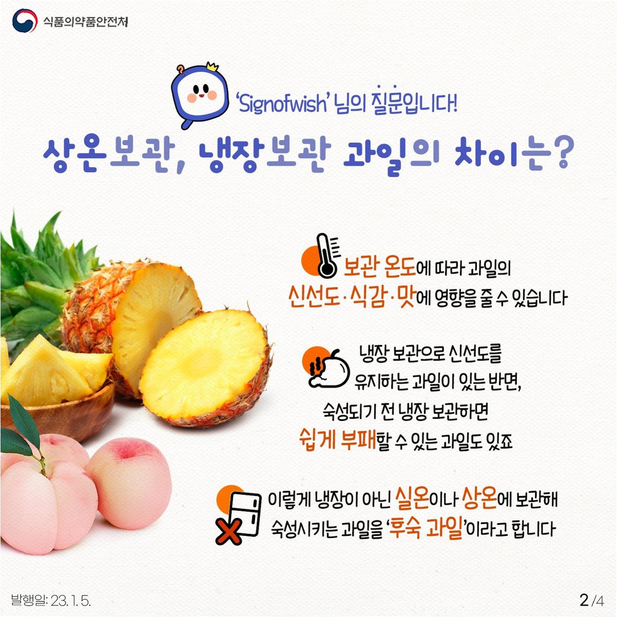 식약처가 제시한 식품별 적정 보관 온도를 살펴보면, 바나나는 11~15℃, 파인애플은 4~8℃, 토마토는 7~10℃에서 보관하는 것이 좋습니다. 이 온도들은 일반적인 냉장고 온도보다 높습니다. 바나나를 냉장 보관하면 세포벽이 파괴되어 껍질이 빠르게 검게 변하며, 토마토는 차가운 공기로 인해 숙성 과정이 멈추고 껍질 속 세포막이 손상되어 특유의 풍미가 사라집니다. 감자의 적정 온도는 15~25℃인데, 냉장 보관 시 전분이 당으로 변환되어 조리 시 단맛이 강해지고 본연의 색과 식감을 잃게 됩니다. 고구마는 10℃ 이상을 유지해야 하며, 양파는 냉장고 습기를 흡수해 금세 물러지고 곰팡이가 생길 수 있어 건조하고 통풍이 잘 되는 서늘한 곳에 보관하는 것이 적합합니다.