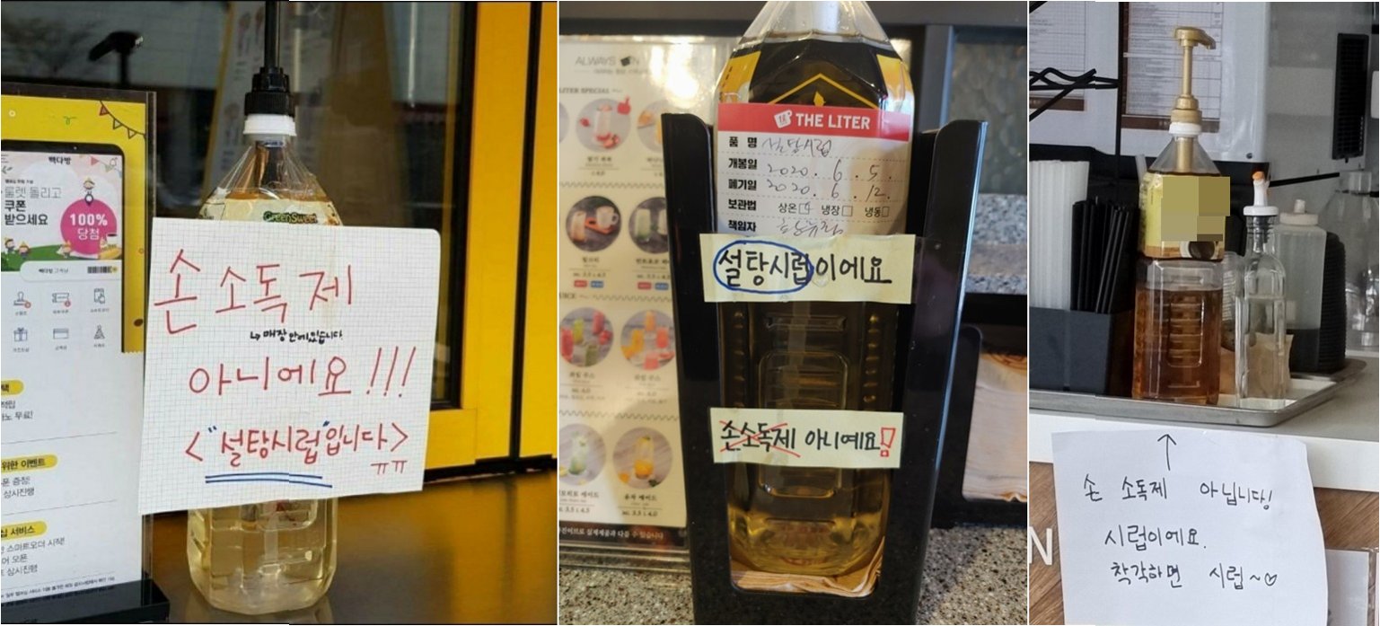 사연을 올린 작성자는 당시 정신이 없었고 글씨가 작아 미처 확인하지 못했다고 해명했습니다. 이는 한국 카페에서 흔히 볼 수 있는 시럽 병의 디자인과 손 소독제 병의 유사성 때문에 발생한 오해로 보입니다. 특히 외국인 관광객에게는 이러한 문화적, 시각적 차이가 혼란을 야기할 수 있음을 시사합니다. 한국의 카페 문화와 외국인 관광객의 경험 사이의 간극을 보여주는 사례입니다.