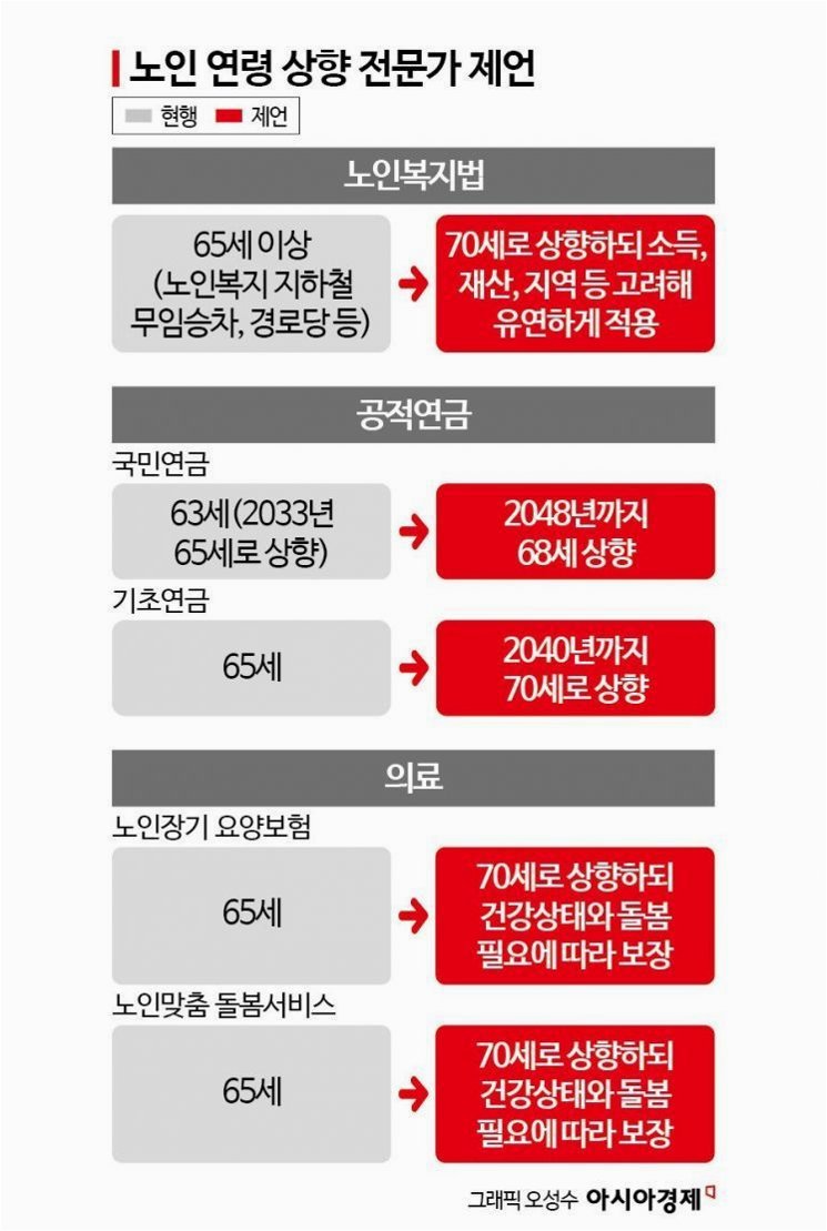 A.정년 연장(60세->65세)과 국민연금 수급 개시 연령 상향 조정(현행 65세에서 68세로)을 제안했습니다.