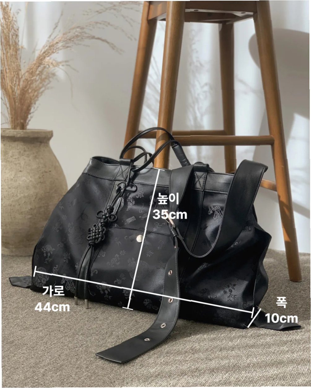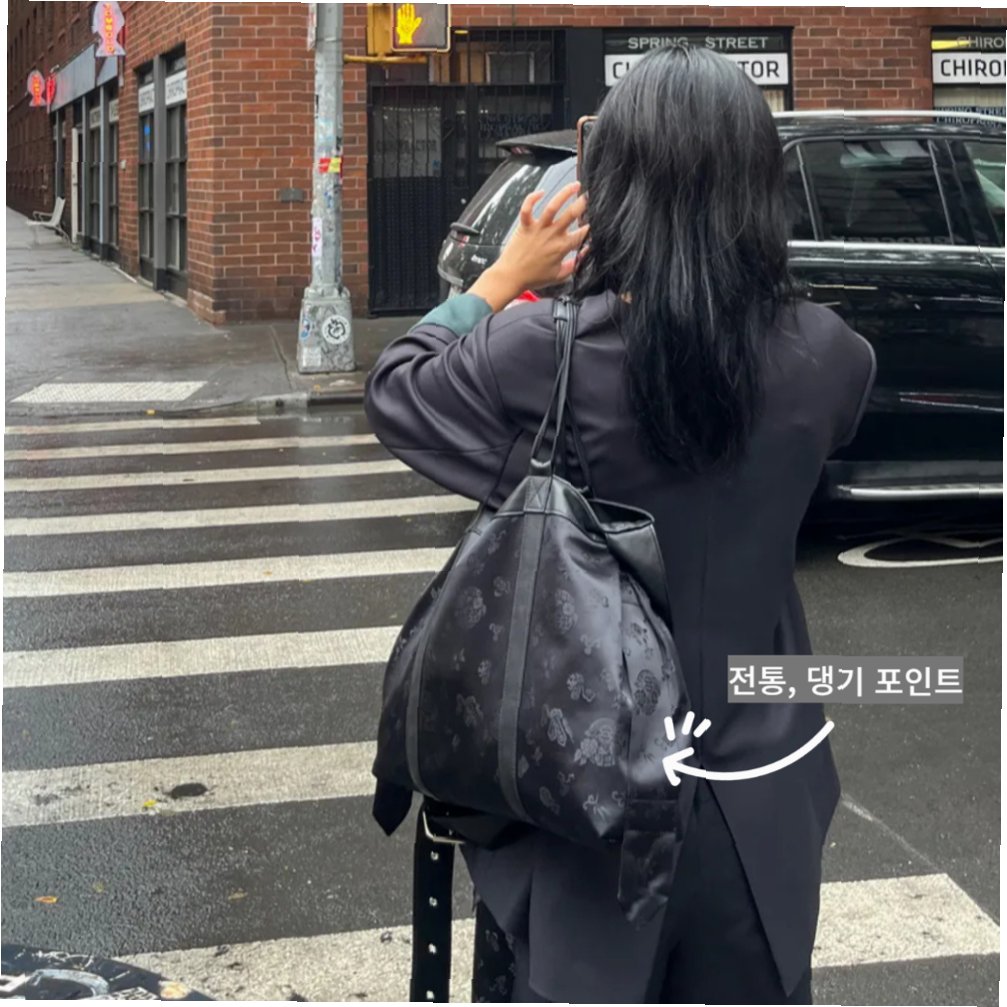 A.'댕기백'은 한복 원단과 가죽을 결합하여 제작되었으며, 댕기 모양을 그대로 재현한 독창적인 디자인이 특징입니다. 전통적인 아름다움을 현대적으로 재해석하여 많은 사랑을 받고 있습니다.