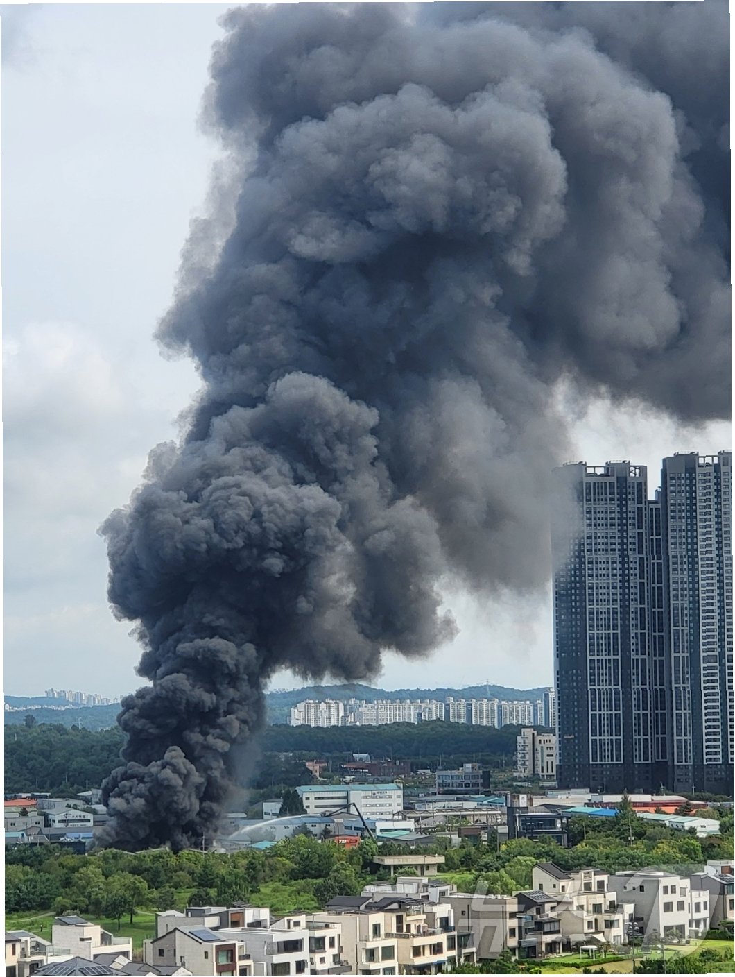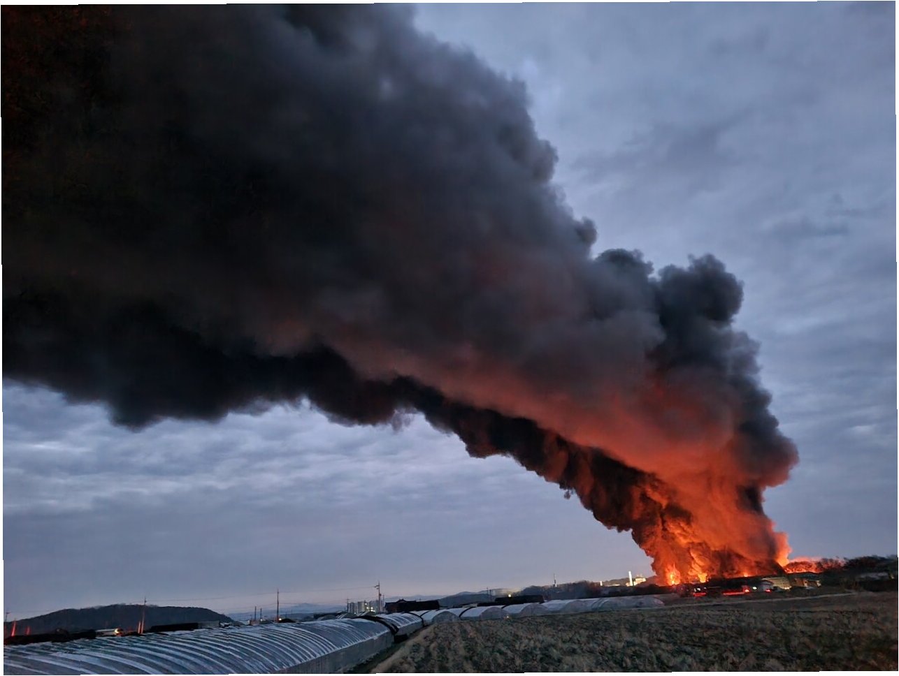 A.제보 영상만으로는 정확한 원인을 파악하기 어렵습니다. 화재, 산업 시설 문제 등 다양한 원인이 있을 수 있습니다.