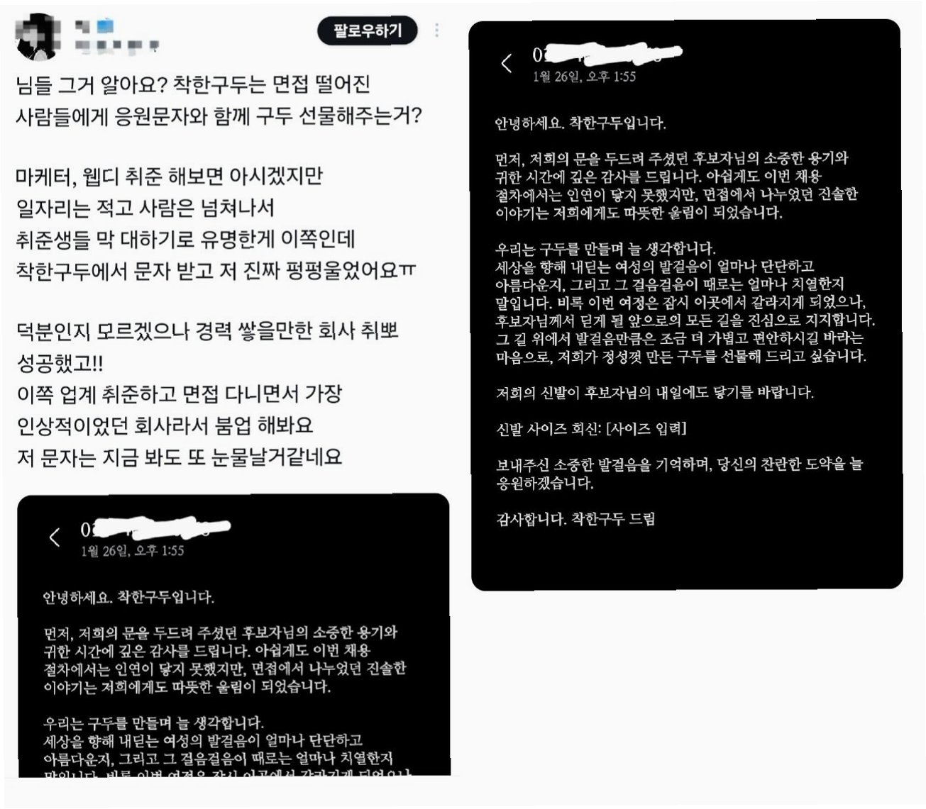 Q.회사가 면접 탈락자에게 구두를 선물한 이유는 무엇인가요?