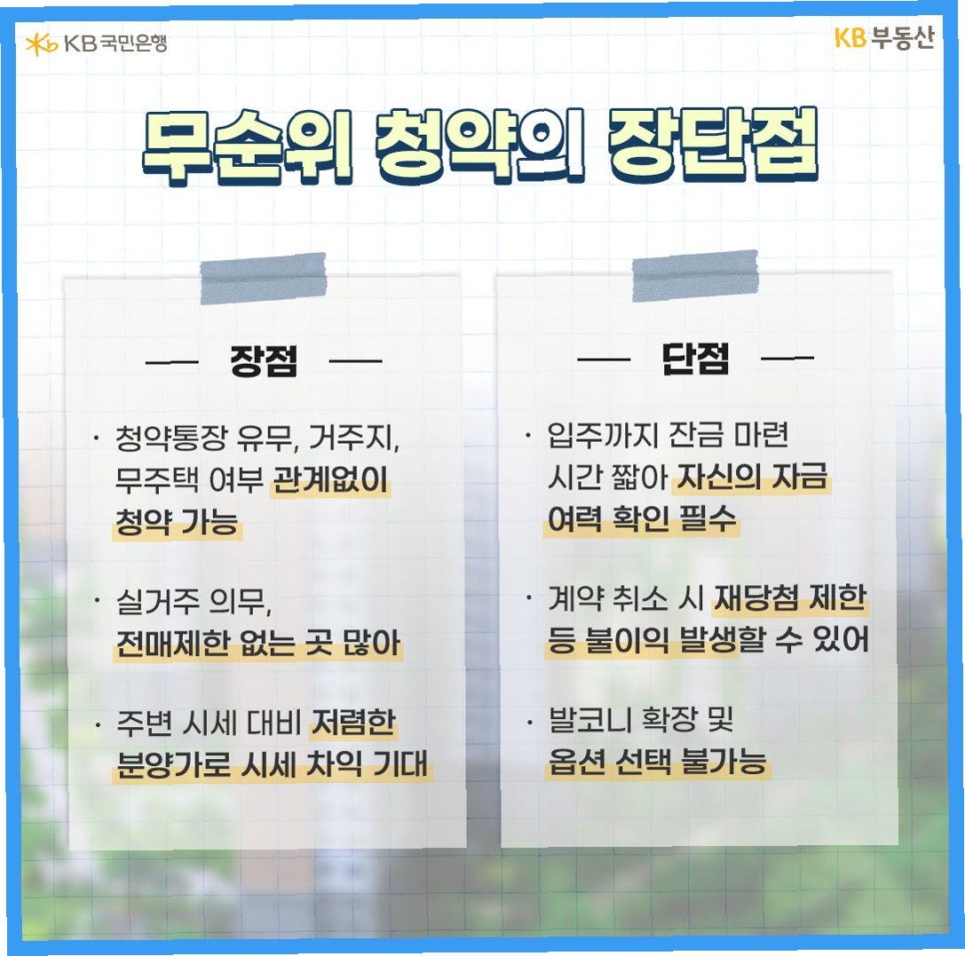 무순위 청약은 누구나 참여할 수 있다는 장점이 있지만, 몇 가지 기본 정보는 숙지해야 합니다.