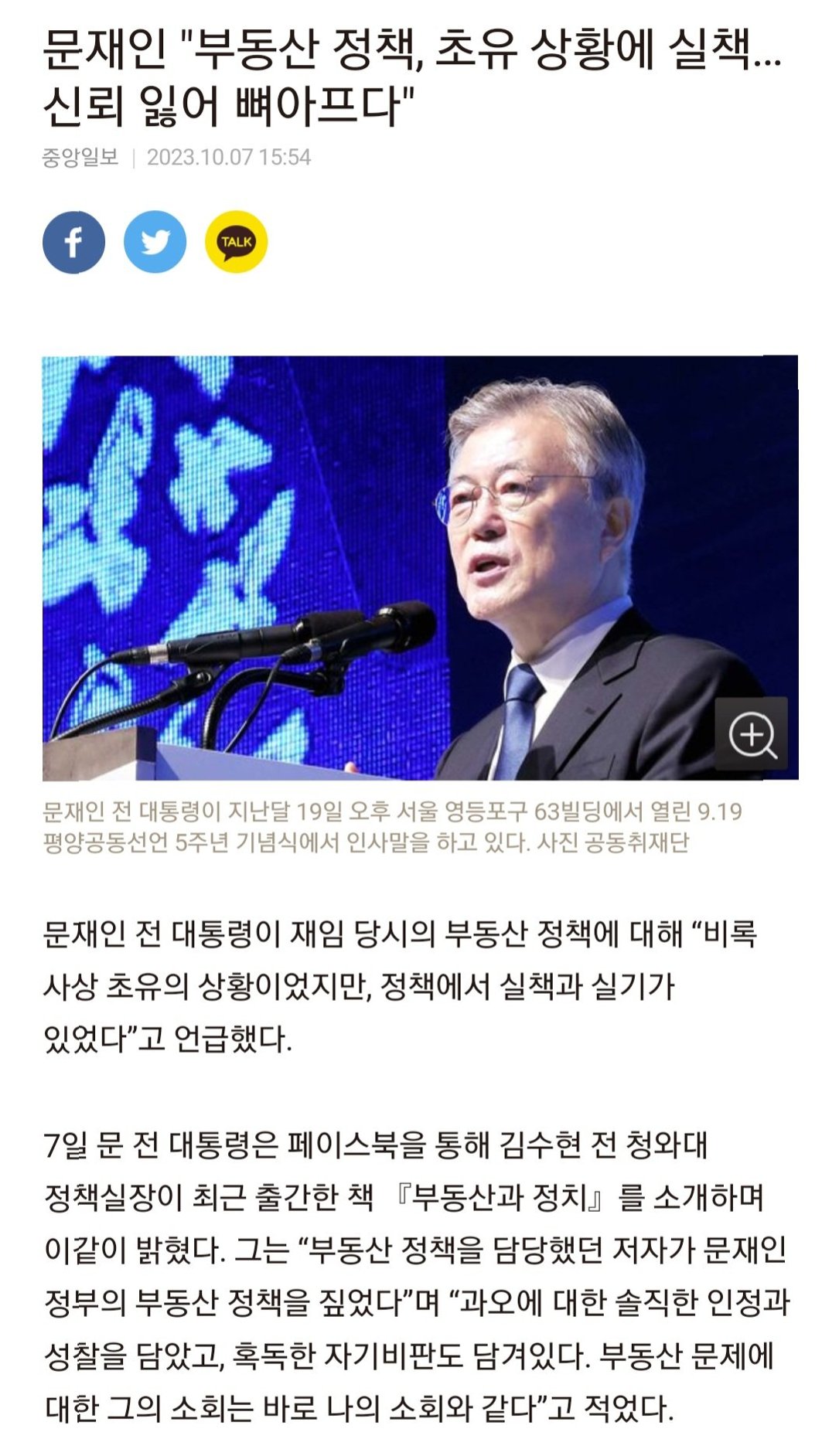 Q.문재인 전 대통령이 부동산 정책 실패를 인정한 이유는 무엇인가요?