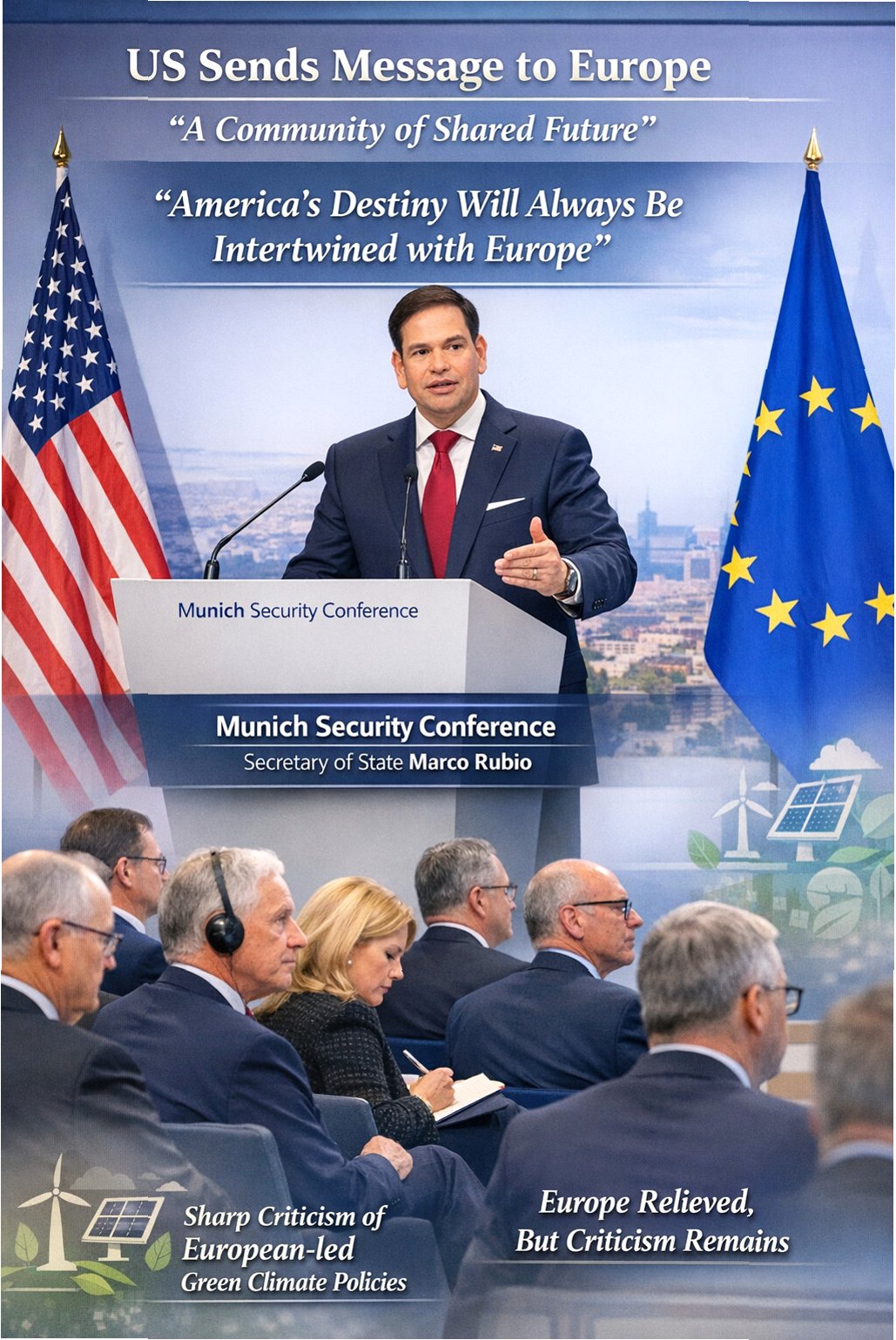 이러한 유럽 정상들의 비판적인 목소리에 대해, 미국 국무장관은 양측이 '정신과 문화로 연결되어 있다'며 오랜 유대를 강조했습니다. 하지만 동시에, 트럼프 행정부의 기조에 맞춰 반자유무역과 국경 봉쇄를 옹호하며, 대규모 이민이 서구 세계의 생존을 위협한다고 주장했습니다. 이는 유럽의 '전략적 자율성' 추구와는 상반되는 입장으로, 미국 중심의 기존 국제 질서를 따를 것을 촉구하는 메시지로 해석됩니다.