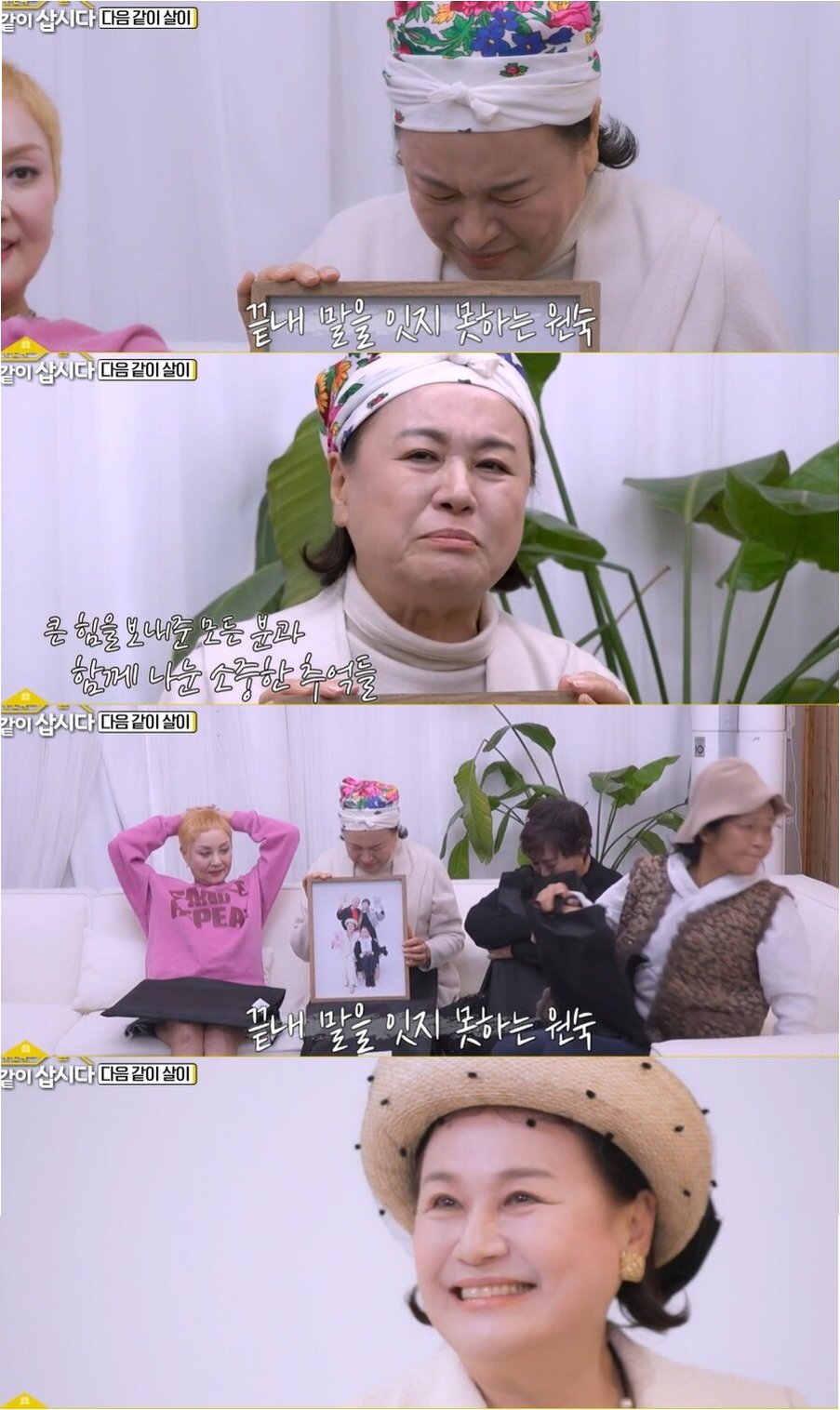 혜은이는 7년간 동고동락한 박원숙에게 “바보 같은 나를 참아주느라 애썼다”는 따뜻한 말을 전하며 깊은 우정을 드러냈습니다. 서로를 의지하며 힘든 시간을 함께 이겨낸 두 사람의 모습은 시청자들에게 진한 감동을 선사했습니다. 홍진희와 황석정 또한 언니들과 함께한 시간을 소중히 여기며, 마지막 촬영을 아쉬워했습니다. 황석정은 막내로서 언니들을 웃게 만들며 훈훈한 분위기를 연출했고, 네 사람은 서로에게 고마움을 전하며 잊지 못할 추억을 만들었습니다.