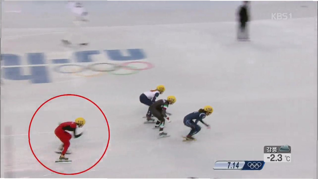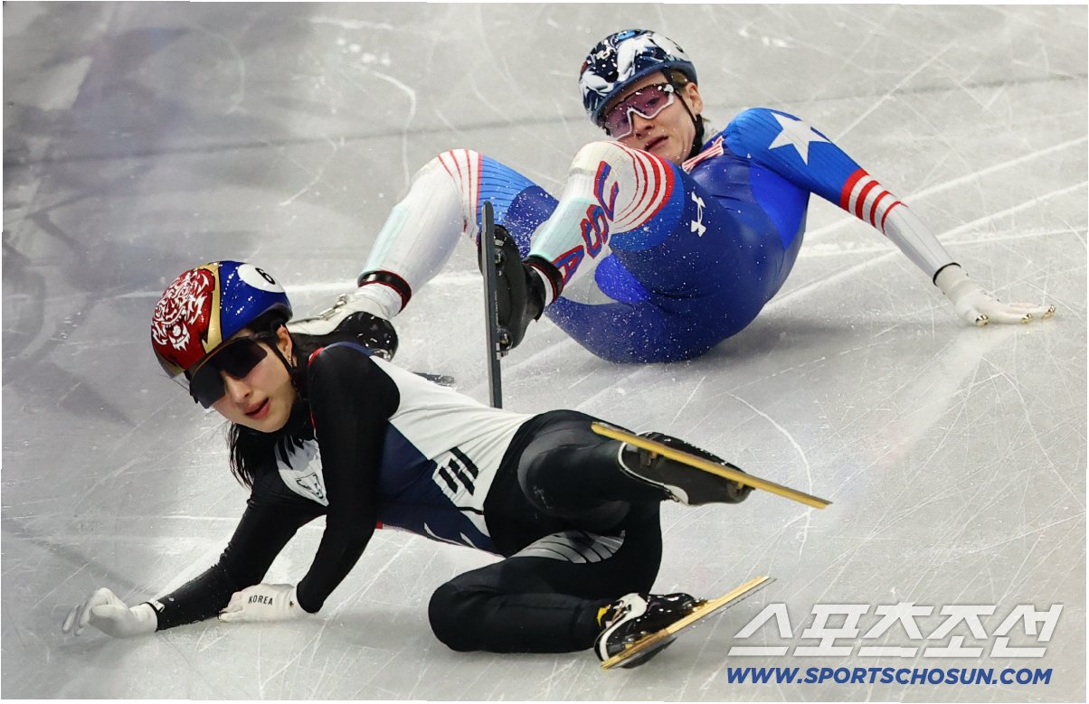A.치열한 자리 싸움 중 선수들이 엉키면서 넘어졌고, 이 과정에서 스케이트 날에 의한 부상이 발생했습니다.