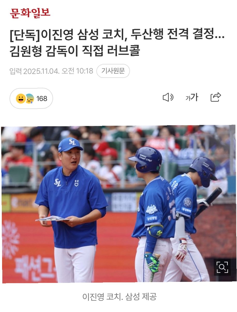 야구계에 따르면, 삼성의 이진영 타격코치가 두산 베어스로의 이적을 앞두고 있습니다. 김원형 신임 감독의 적극적인 영입 요청이 결정적인 역할을 했으며, 구단 역시 이를 수용하여 최종 계약만을 남겨둔 상태입니다. 이 소식은 야구 팬들에게 큰 관심사로 떠올랐습니다.