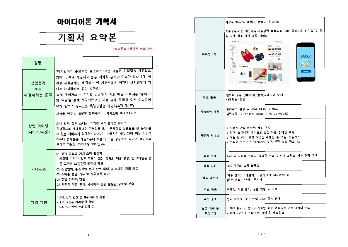 1. 사업 개요 작성: 사업의 목적, 비전, 핵심 가치, 사업 아이템에 대한 간략한 설명을 포함합니다. 사업의 전체적인 윤곽을 제시하고, 투자자나 관계자들에게 사업의 핵심을 전달하는 역할을 합니다.