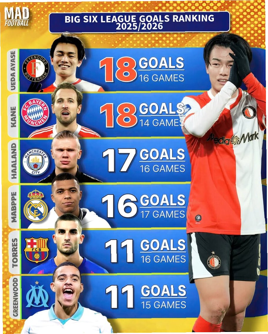 우에다는 올 시즌, 개막전부터 득점포를 가동하며 부활을 알렸습니다. 9라운드에서 해트트릭을 기록하고, 15라운드 즈볼러전에서는 혼자 4골을 몰아치며 6-1 대승을 이끌었습니다. 그 결과, 현재 리그에서 18골을 기록하며, 지난주 기준 유럽 5대리그 가운데 해리 케인과 득점 공동 1위에 이름을 올렸던 셈. 비록 케인이 득점하며 단독 1위로 올라섰지만, 우에다는 엘링 홀란, 킬리안 음바페 등 세계적인 공격수들과 어깨를 나란히 하며 유럽 축구계를 놀라게 했습니다.