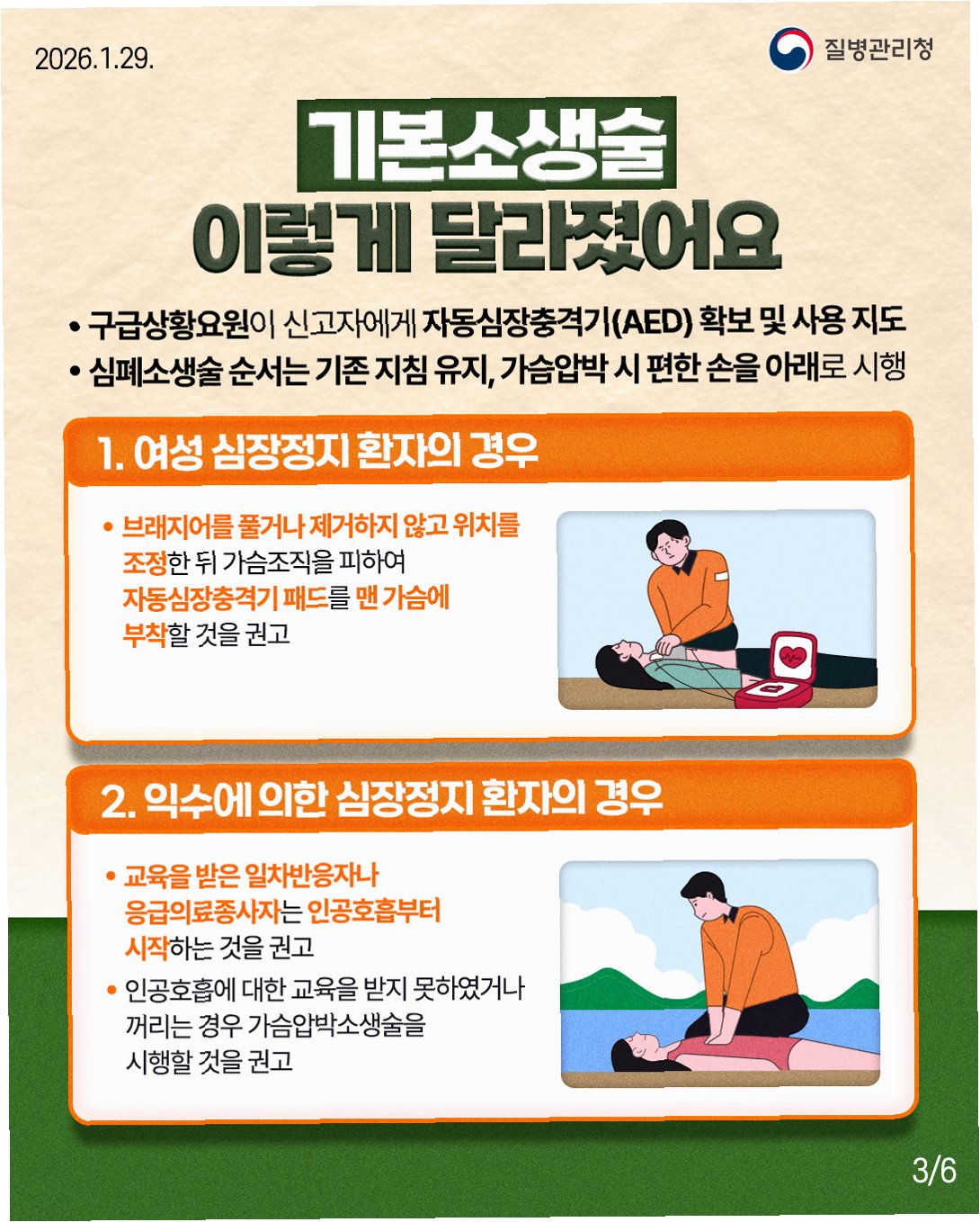 변경된 심폐소생술 지침은 여성 환자의 AED 사용 편의성을 높이고, 영아 및 익수 환자에 대한 보다 안전하고 효과적인 대처법을 제시합니다. 이러한 변화는 일반 시민들이 응급 상황에서 더욱 자신감을 가지고 생명을 구할 수 있도록 돕는 데 초점을 맞추고 있습니다.