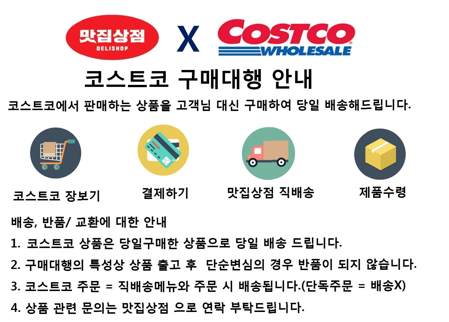 3. 배송 비용: 코스트코 당일 배송은 배송료가 발생하며, 주문 금액에 따라 달라질 수 있습니다. 자세한 내용은 코스트코 온라인몰을 참고하세요.
