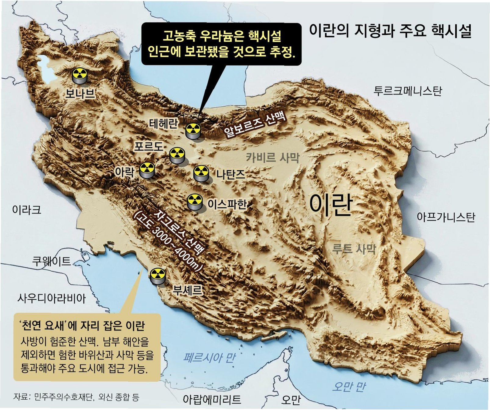 A.이란의 험준한 지형, 분산된 핵시설, 그리고 막대한 인적·물적 부담 때문에 전면적인 지상군 투입은 현실적으로 어렵습니다. 또한, 소규모 지상전으로는 결정적인 타격을 주기 어렵다는 한계도 있습니다.
