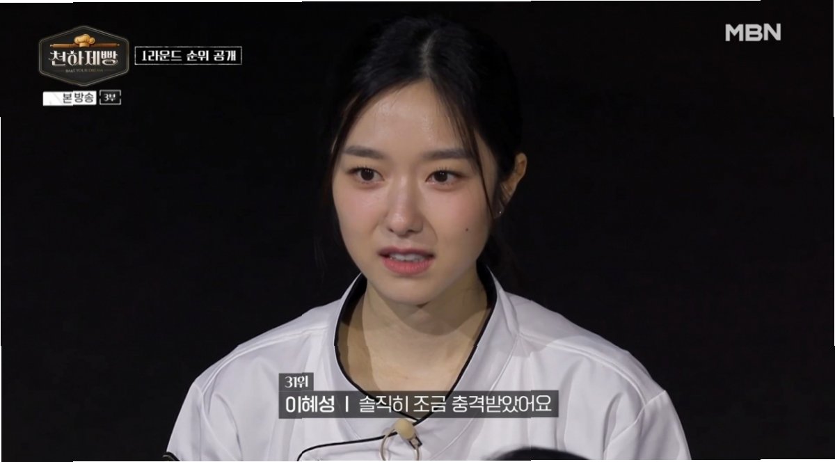 MBN 예능 '천하제빵'에서 이혜성이 2라운드 팀 미션 도중 치명적인 실수를 저질러 팀 전체를 위기에 빠뜨렸습니다. 1라운드에서 31위로 아슬아슬하게 2라운드에 진출한 이혜성은 '빵먹기 좋은 날'을 주제로 한 팝업스토어 대결에서 '해장하기 좋은 날' 팀에 합류했습니다. 하지만 촉박한 시간 속에서 긴장한 나머지 다른 멤버가 이미 진행한 반죽을 초기화시키는 실수를 범하며 팀원들을 당황하게 만들었습니다.