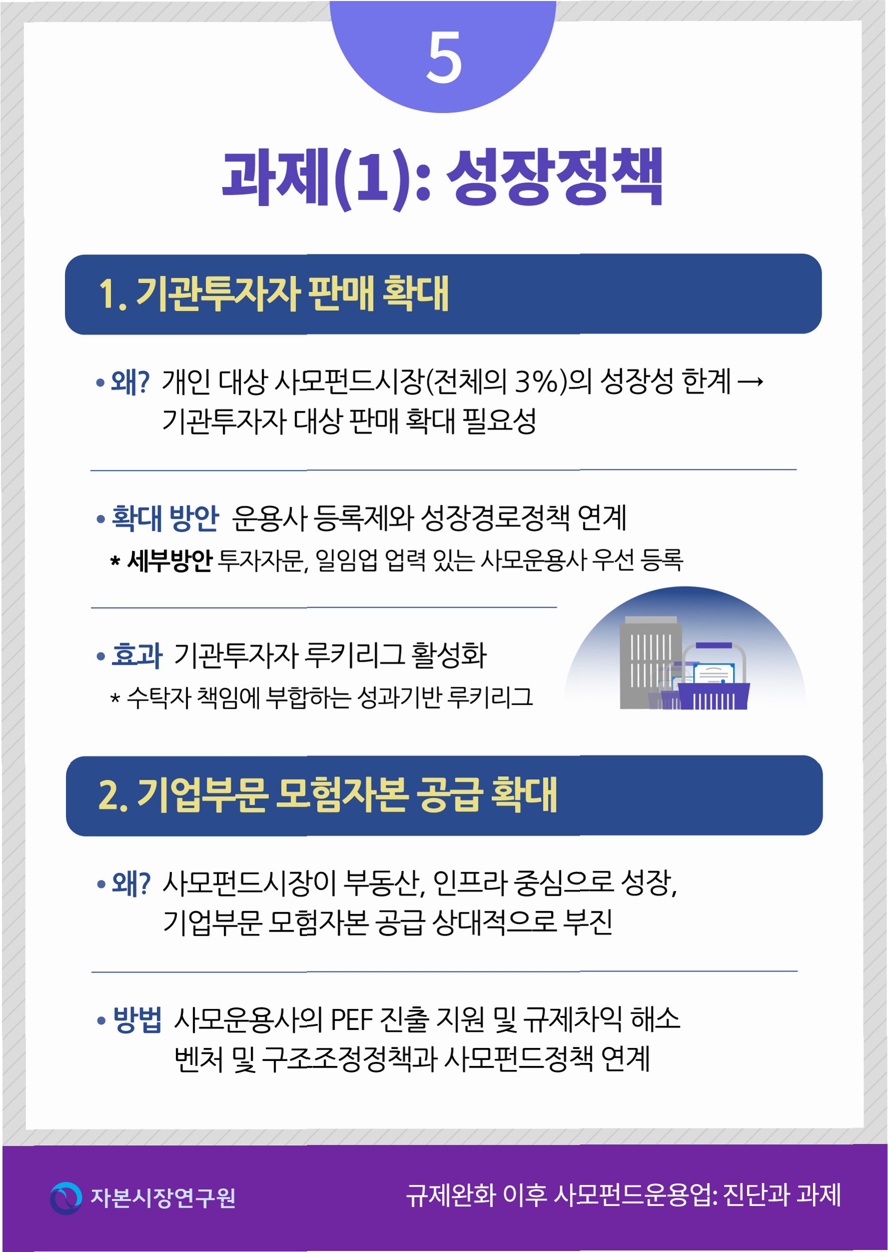 1. 규제 완화: 불필요한 규제를 개선하여 운용사의 자율성을 확대하고, 시장 경쟁을 촉진합니다.