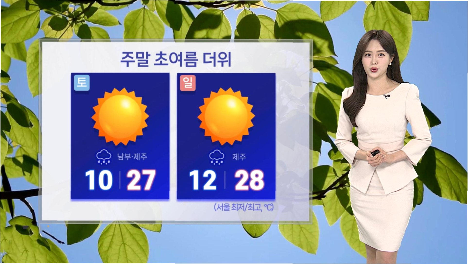 이번 주말은 초여름처럼 낮 기온이 크게 오르겠지만, 일교차가 크고 건조한 날씨가 이어지겠습니다. 화재 예방과 건강 관리에 유의하며, 해상 안전에도 주의해야 합니다.
