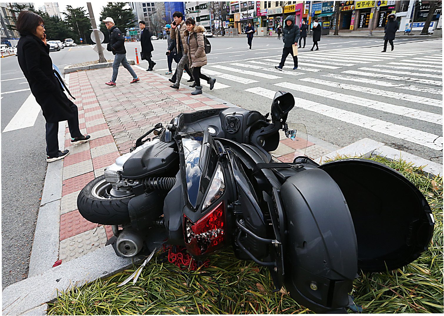 A.CCTV 분석과 목격자 진술을 통해 오토바이 운전자를 추적하고 있습니다.