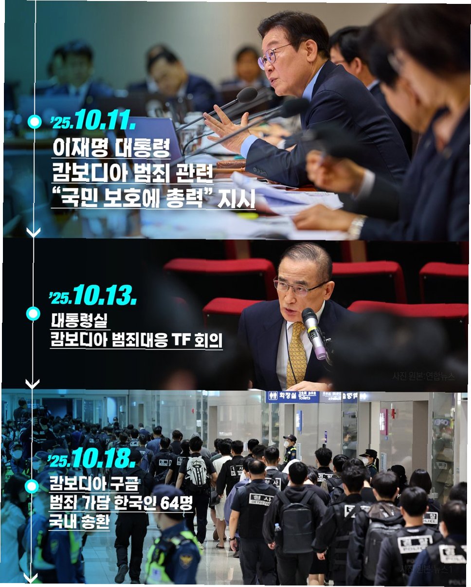 이재명 대통령은 자신의 SNS를 통해 "요즘 보이스피싱이 조금 뜸해진 것 같지 않습니까?"라고 운을 떼며, 이는 경찰 코리아전담반과 국가정보원의 활약 덕분이라고 강조했습니다. 한국인을 건드리면 패가망신할 것이라는 강력한 메시지와 함께, 해외에서 활동하는 범죄 조직에 대한 한국 수사기관의 적극적인 대응 의지를 보여주었습니다. 이러한 노력들이 국내 보이스피싱 범죄 감소에 기여하고 있음을 시사합니다.