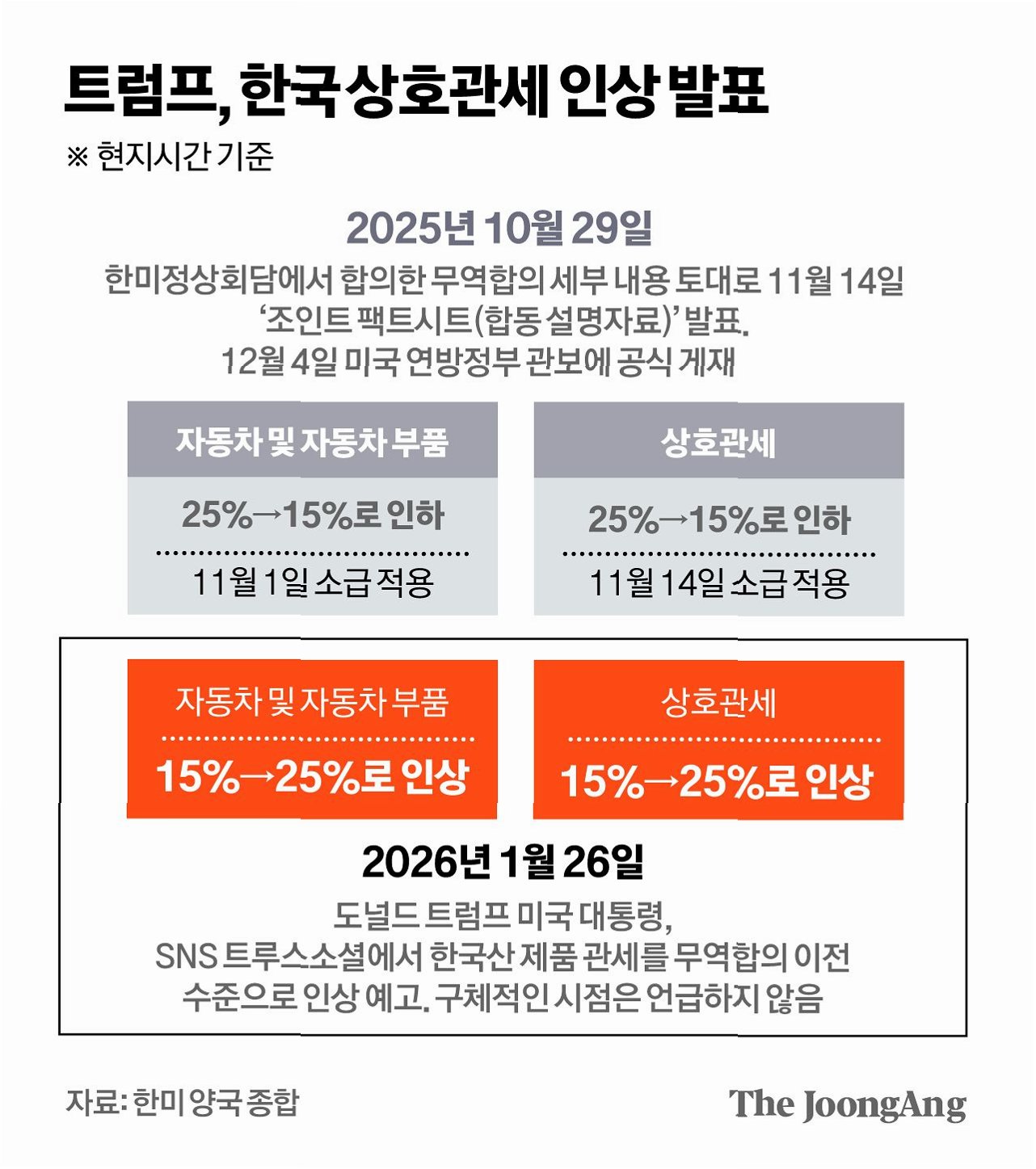 트럼프 대통령, 한국산 제품 관세 인상 철회 시사