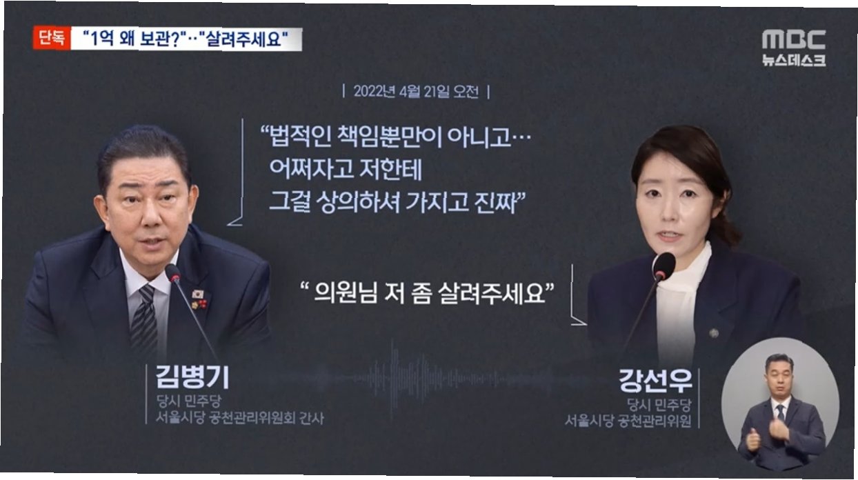 MBC 보도에 따르면, 2022년 6월 1일 제8회 지방선거 당시 더불어민주당 서울시당 공천관리위원 강선우 의원이 김병기 공관위 간사에게 자신의 보좌관이 김경 후보로부터 1억 원을 받았다는 의논을 구하는 등 대가성 공천 의혹이 제기되었다.