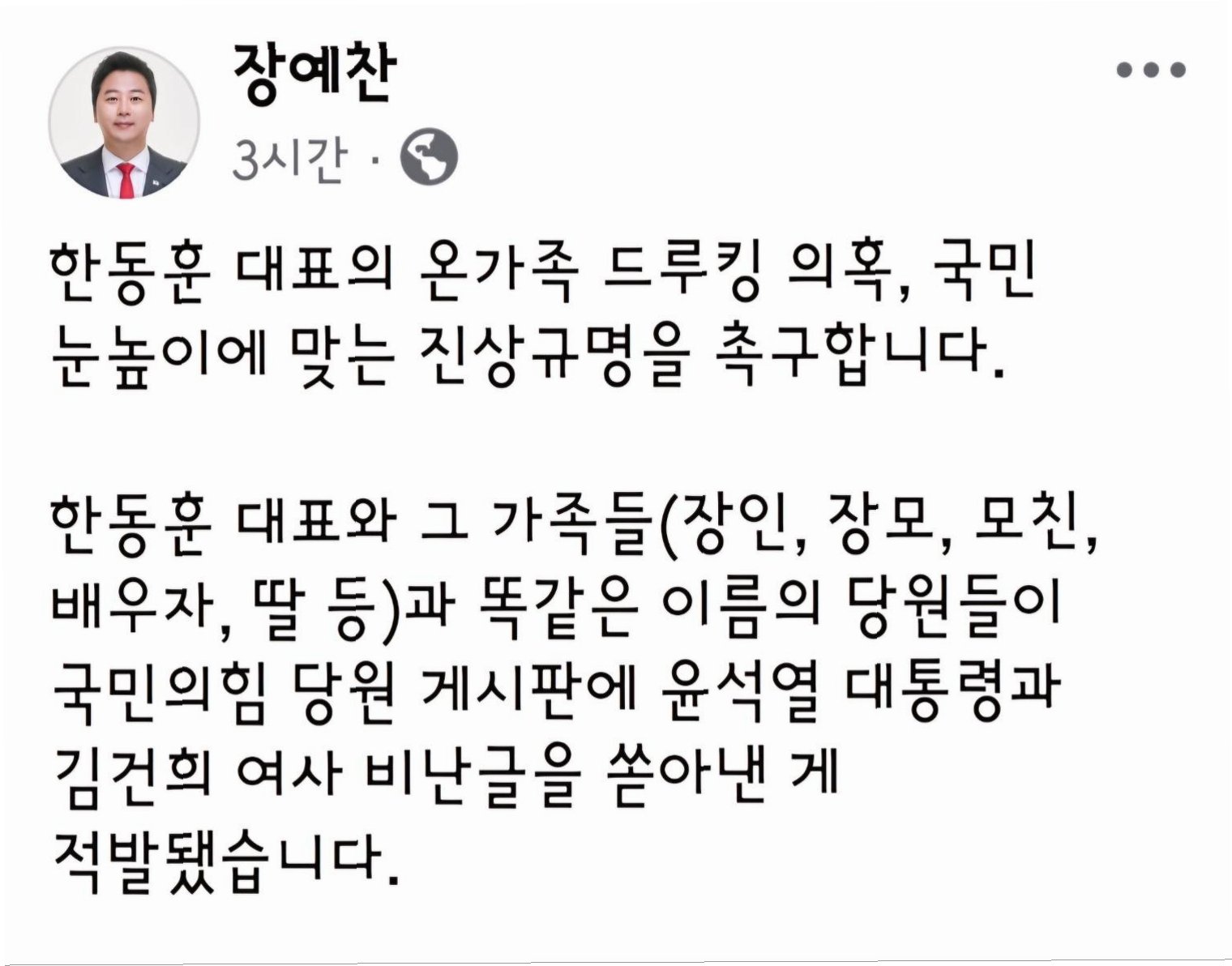 국민의힘 당무감사위원회가 긴급 공지 문자를 통해 한동훈 전 국민의힘 대표의 '당원게시판 논란'과 관련된 중요한 사실을 발표했습니다이 발표는 정치권에 큰 파장을 일으키며, 많은 이들의 이목을 집중시켰습니다논란의 핵심은 한 전 대표의 가족, 즉 아내, 장모, 장인, 그리고 딸과 동일한 이름의 당원 4명이 비슷한 시기에 탈당했다는 것입니다당무감사위는 불필요한 오해를 막기 위해 이 사실관계를 명확히 안내한다고 밝혔습니다.