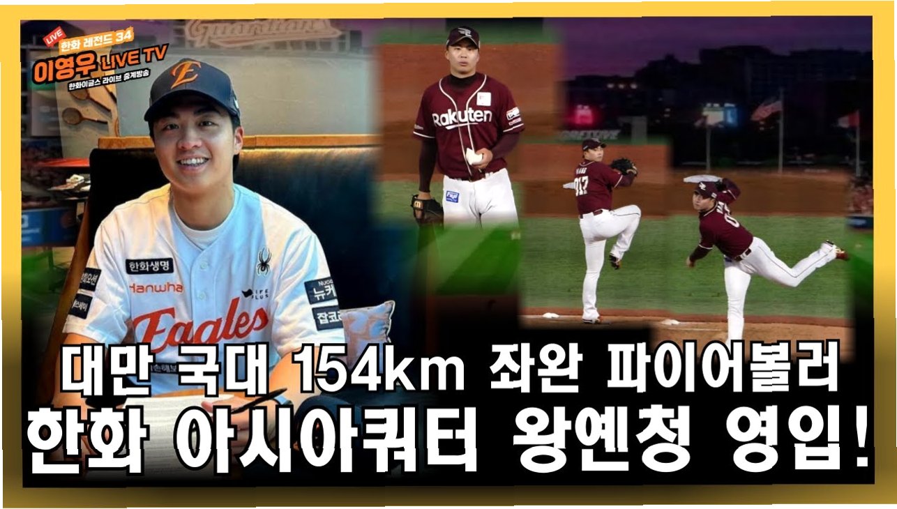 한화 이글스가 대만 국가대표 출신 좌완 투수 왕옌청을 영입하며 2024 시즌을 위한 준비를 서두르고 있습니다. 154km 강속구를 자랑하는 왕옌청은 NPB 이스턴리그에서 뛰어난 활약을 펼쳤으며, 한화의 마운드 전력 강화에 크게 기여할 것으로 기대됩니다. 왕옌청은 한화 팬들의 뜨거운 열정을 느끼고 싶다는 포부를 밝혔으며, 팀의 성공을 위해 최선을 다할 것을 다짐했습니다. 한화는 왕옌청 영입을 통해, 2026년 아시아쿼터 제도 시행에 대비하고, 팀의 미래를 더욱 밝게 만들 것입니다.