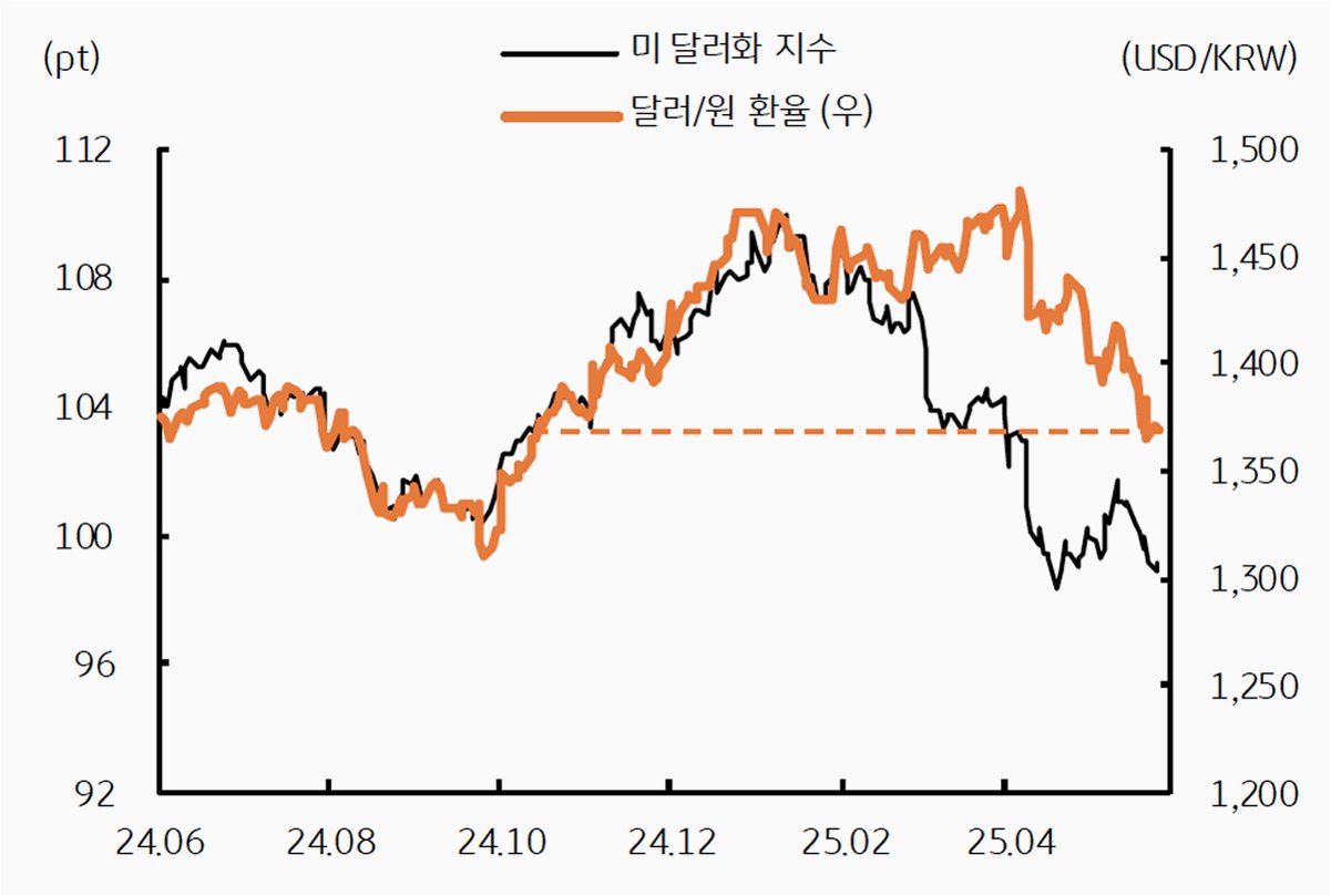 A.달러 인덱스 하락에도 불구하고, 위험 회피 심리가 강해지면서 안전 자산 선호 심리가 높아졌고, 이는 원화 매도 심리를 자극하여 원화 약세로 이어진 것으로 분석됩니다.