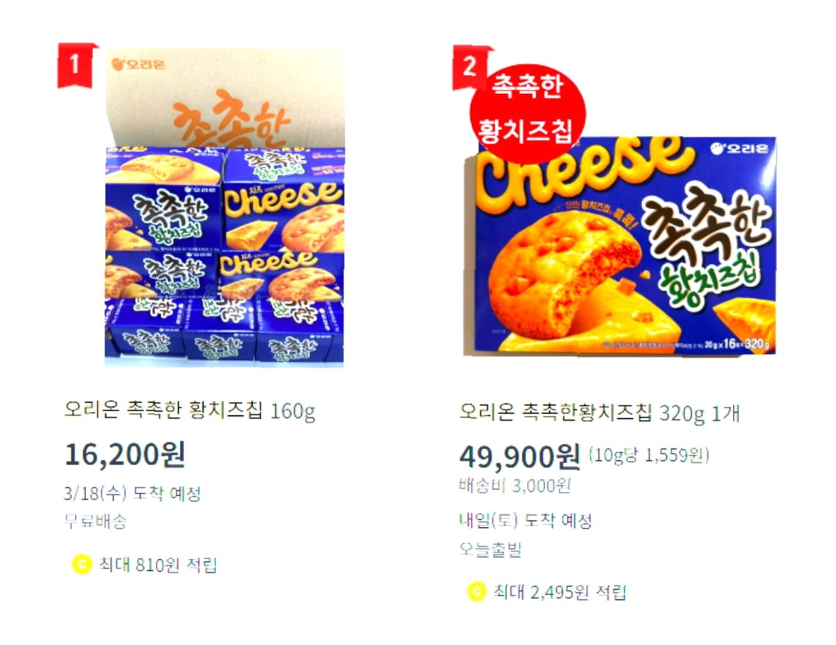 최근 오리온의 '촉촉한 황치즈칩'이 놀라운 품귀 현상을 겪고 있습니다. 대형마트 판매가 4480원 대비 오픈마켓에서 4만 9900원, 즉 10배 이상 폭등한 가격에 거래되고 있습니다. 이는 지난달 26일 봄 시즌 한정 수량으로 출시된 신상품으로, 기존 '촉촉한 초코칩'에 치즈 맛을 더한 제품입니다. 총 38만 박스만 생산되어 일부 유통 채널에만 입고되었으며, 이미 한정 생산분은 모두 출고된 상황입니다. 이러한 희소성이 젊은 세대의 소비 심리를 자극하며 품절 사태를 더욱 부추기고 있습니다.