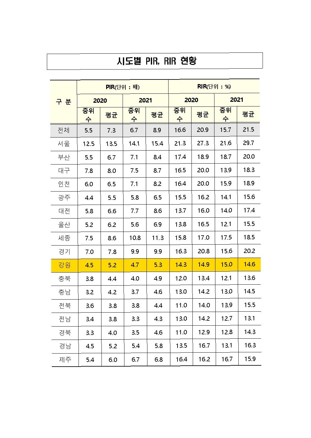 A.PIR(Price Income Ratio)은 연 소득 대비 주택 가격 배수를 의미하며, 월급을 한 푼도 쓰지 않고 모았을 때 집을 장만하는 데 걸리는 시간을 나타냅니다.