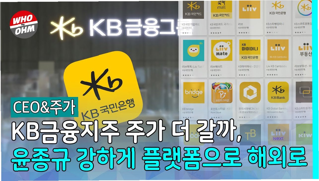 * KB금융지주: KB금융그룹의 주식에 투자하여 그룹 전체의 성장에 참여하고 싶거나, 금융 시장의 거시적인 흐름에 관심이 있는 경우 고려해볼 수 있습니다.