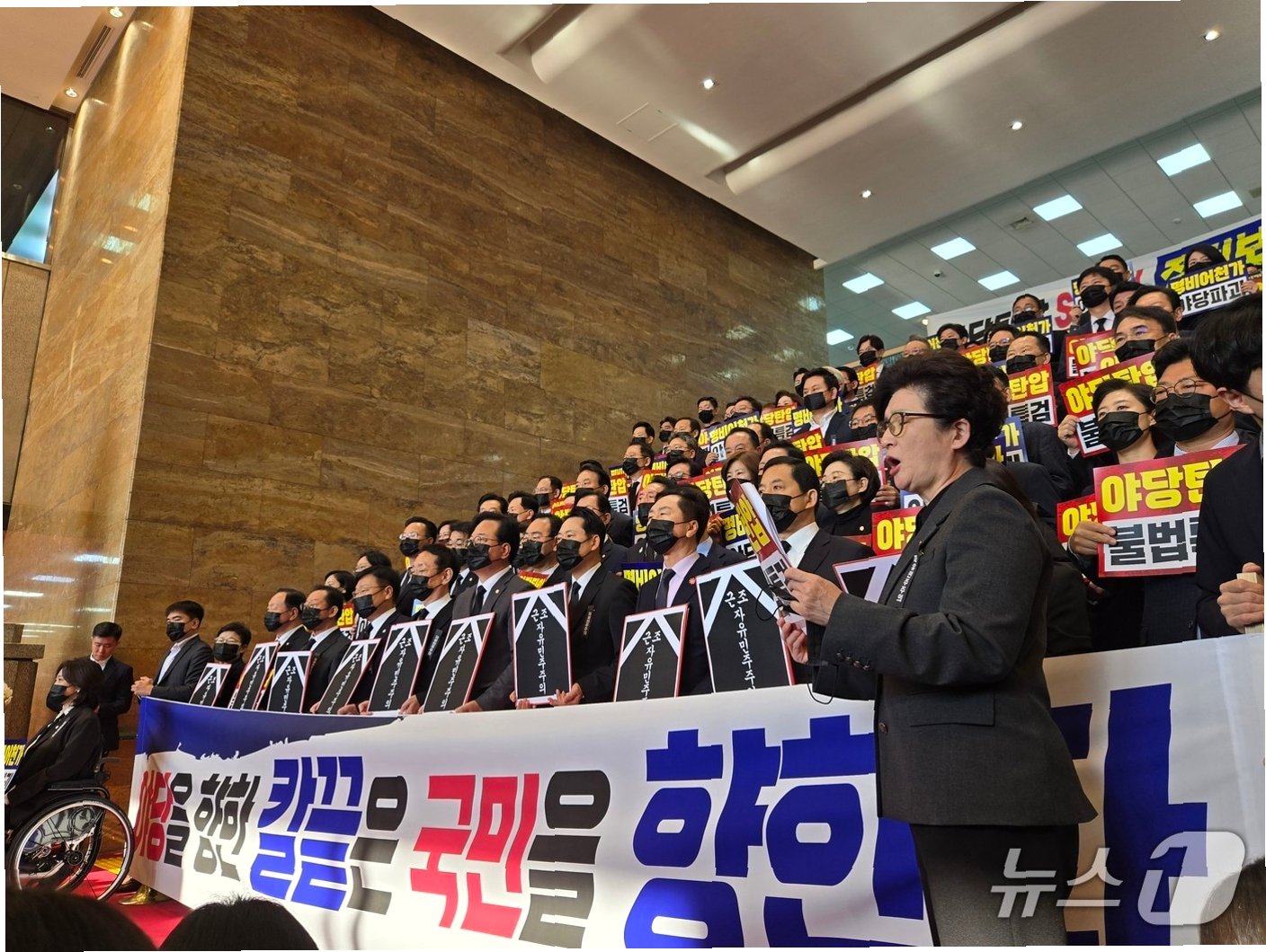 국민의힘이 이재명 대통령의 시정연설을 보이콧하며 정치적 갈등이 심화되고 있습니다. 이번 보이콧은 추경호 전 원내대표에 대한 구속영장 청구에 대한 반발로 시작되었습니다. 자유민주주의가 죽었다는 팻말과 근조리본을 착용한 채 본회의장 진입을 거부하며, 강경한 입장을 표명했습니다. 이는 단순히 시정연설 불참을 넘어, 여야 간의 극한 대립을 보여주는 상징적인 사건으로 해석됩니다. 이러한 행보는 향후 정국 운영에 상당한 파장을 일으킬 것으로 예상됩니다. 특히, 야당의 대통령과 집권 여당에 대한 존중 여부가 중요한 변수로 작용할 것으로 보입니다.