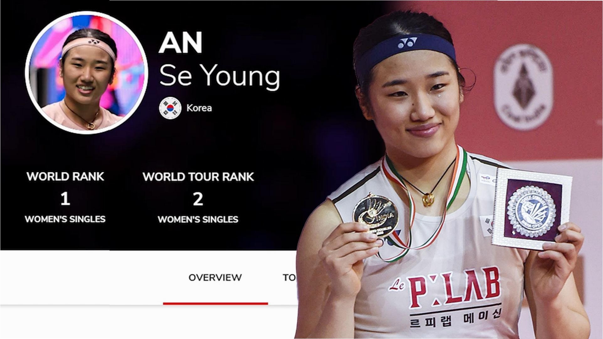 A.안세영 선수는 현재 세계 랭킹 1위입니다.