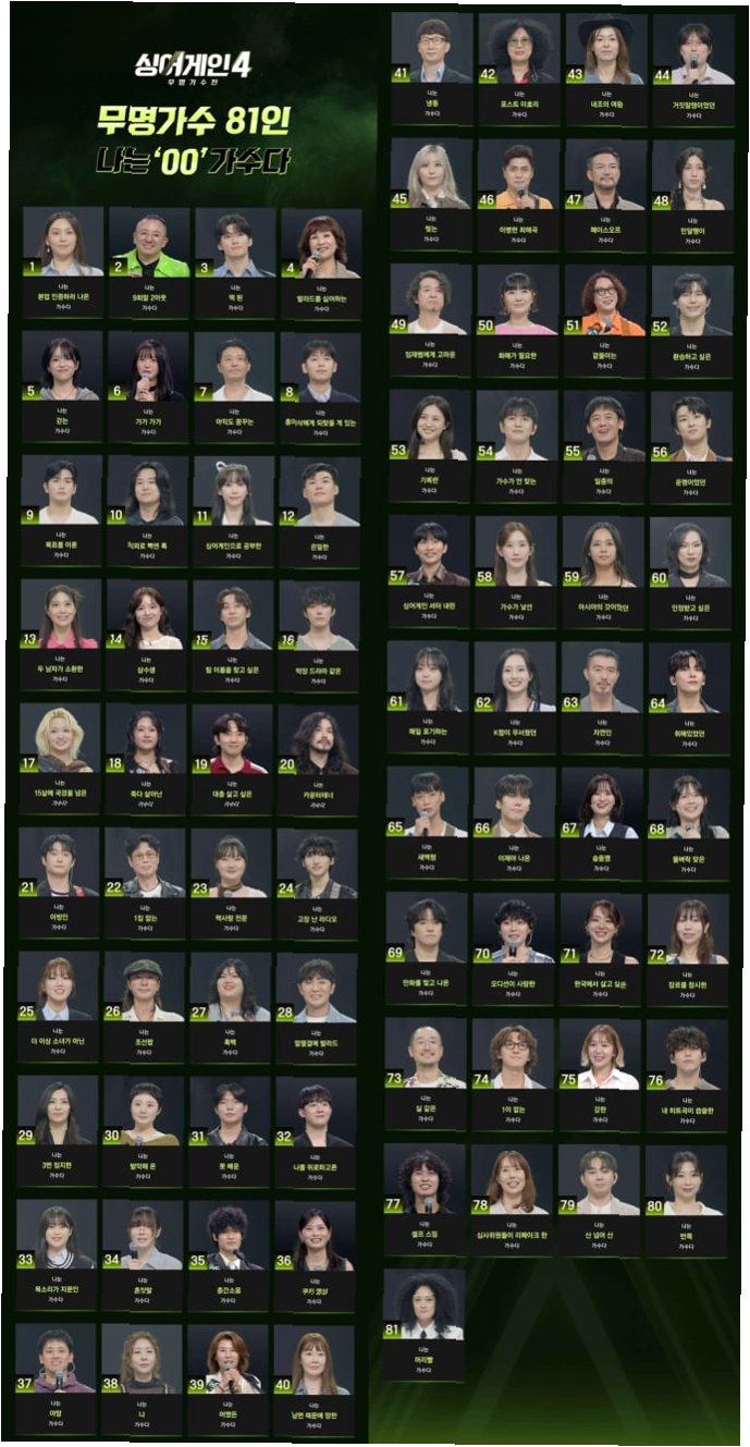 '싱어게인4'는 무대가 간절한 가수들에게 다시 한번 기회를 제공하는 오디션 프로그램이다. 이승기가 MC를 맡고, 임재범, 윤종신, 백지영, 김이나, 규현, 이해리, 코드 쿤스트가 심사위원으로 참여한다. 이번 시즌은 태연의 합류로 더욱 강력한 심사 라인업을 구축했다.