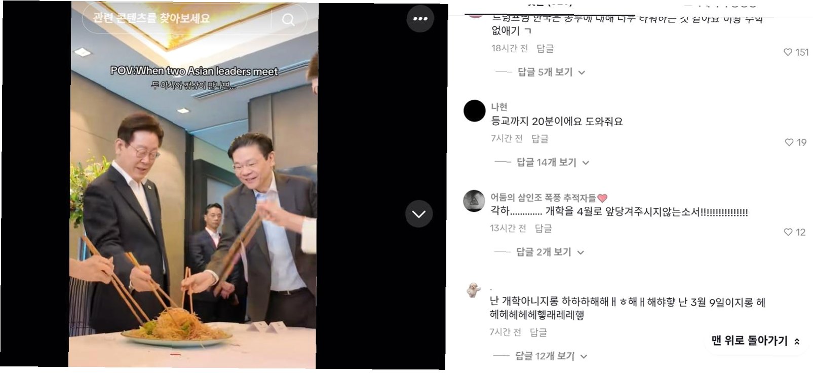 이재명 대통령 틱톡 계정, 학생들의 '개학 연기' 요청 쇄도!