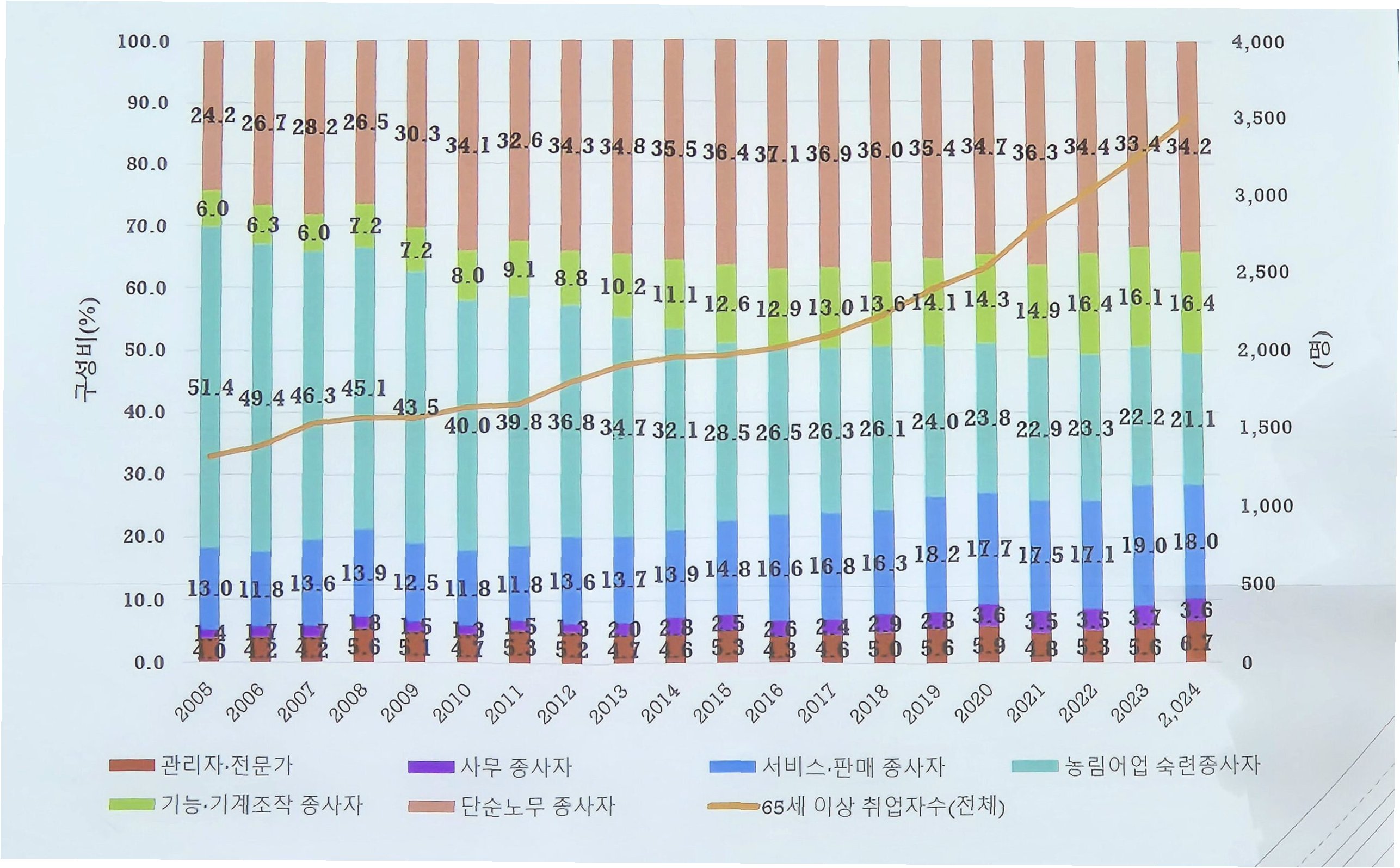 의학 발달로 고령에도 건강을 유지하는 사람들이 늘면서, 은퇴 후에도 '황혼의 노동'을 이어가는 경우가 많습니다. 통계청에 따르면, 올해 8월 65세 이상 고용률은 41.1%로, 10년 전 30.4%에서 크게 증가했습니다. '자식보다 나라가 낫다'는 말이 나올 정도로, 정부는 고령층 가구에 대한 지원을 늘리고 있습니다. 2024년 2분기 65세 이상 가구의 월평균 공적이전소득은 115만 2526원으로 역대 최대를 기록했습니다.