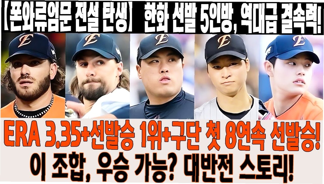 야구는 변수가 매우 많은 스포츠입니다. 한화 이글스가 자랑하는 ‘폰와류문’은 매우 빼어난 선발투수들이지만, 이들이 100% 승률을 보장하는 건 아닙니다. 최강의 원투펀치 코디 폰세와 라이언 와이스가 좋은 경기력을 못 보여줄 수도 있습니다. 류현진과 문동주는 말할 것도 없습니다.