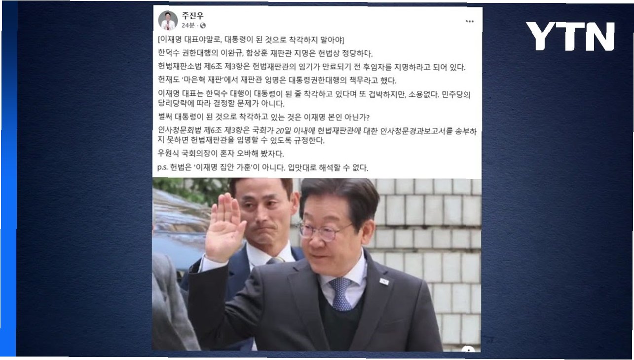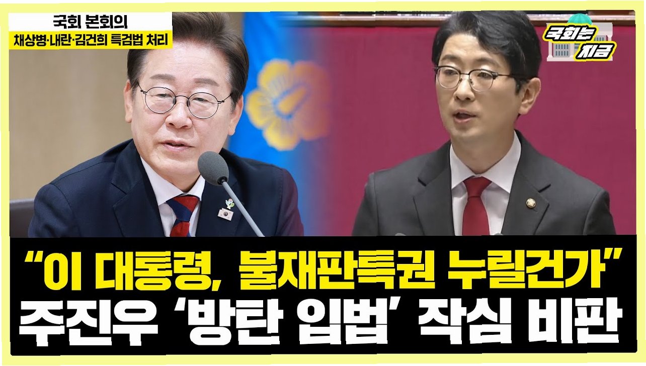 국민의힘 주진우 의원이 이재명 대통령의 예능 프로그램 출연에 대해 날카로운 비판을 제기했습니다. 주 의원은 특히, 국정자원 화재 발생 시점을 언급하며, 대통령의 행적에 대한 의문을 제기했습니다. 그는 대통령이 국가적 재난 상황에서 2일간 회의 주재나 현장 방문 없이 침묵한 점을 지적하며, 예능 촬영 시점을 문제 삼았습니다. 주 의원은 대통령의 자격 문제를 거론하며, 국민들에게 진실을 밝힐 것을 촉구했습니다.