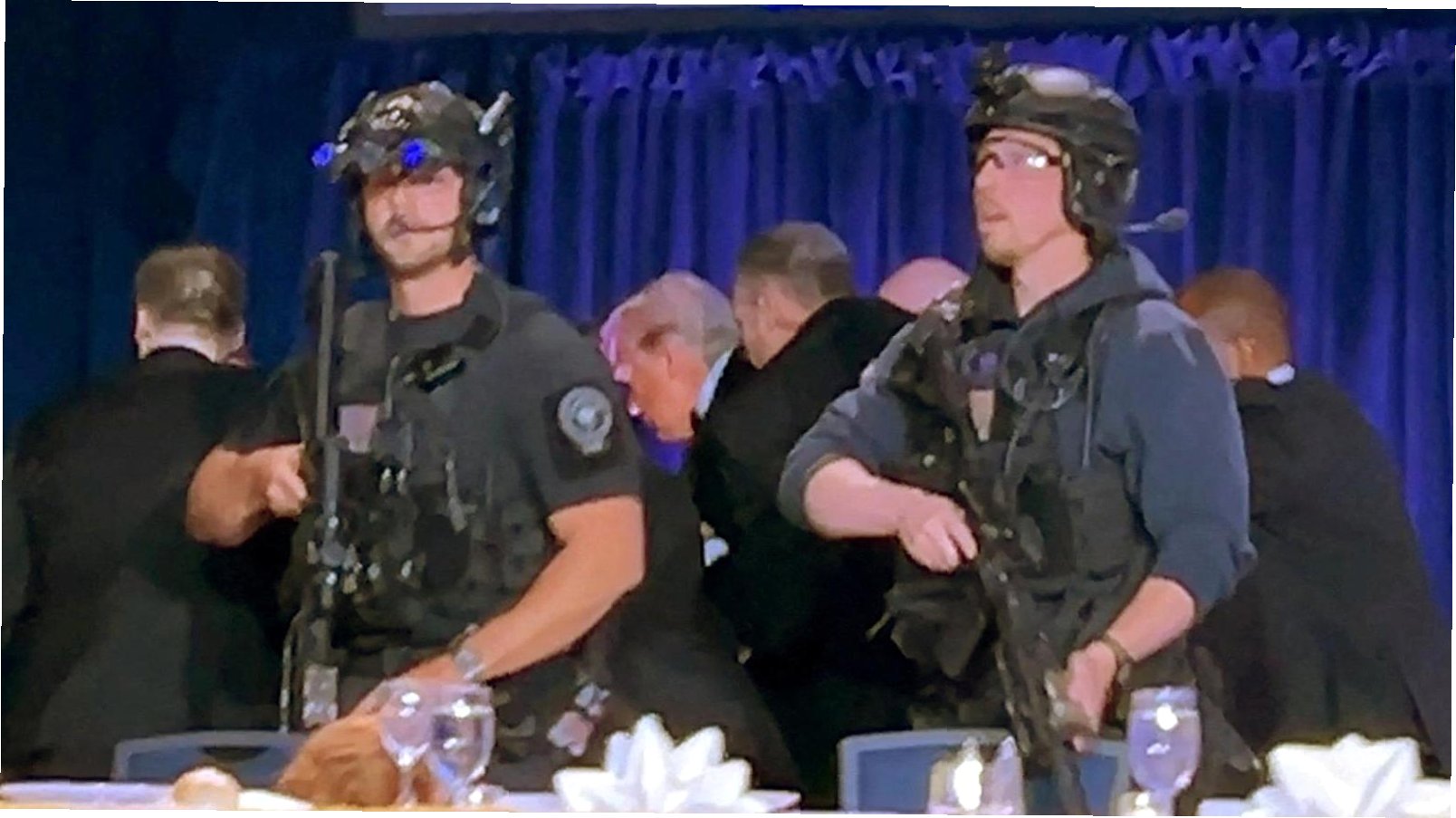 A.총성이 들리자 경호원은 즉시 연단으로 뛰어올라 트럼프 대통령의 앞을 가로막고 보호했습니다.