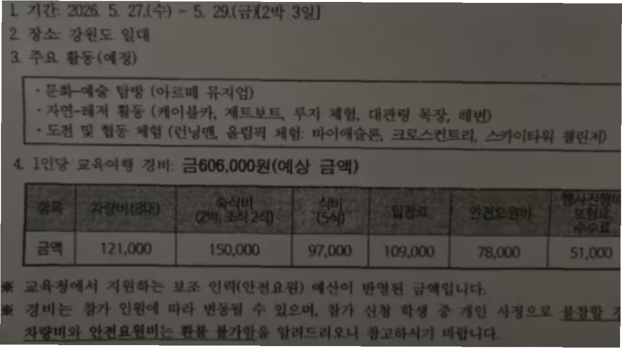 논란의 중심, 60만원 수학여행 결국 취소되다