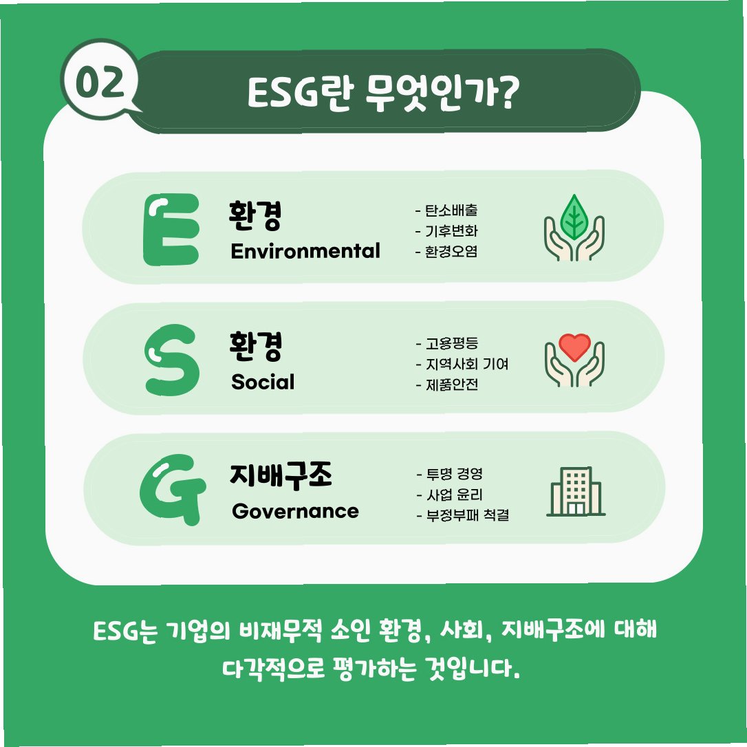 * ESG 보고서 발간: ESG 활동 및 성과를 투명하게 공개하기 위해 ESG 보고서를 발간합니다. GRI, SASB 등 국제적인 보고 기준을 참고하여 보고서의 신뢰성을 확보합니다.