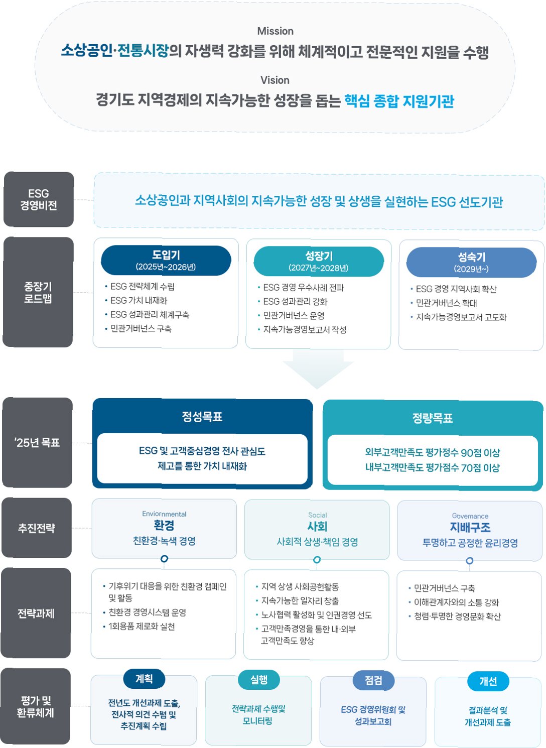 * 성과 측정 및 평가: 설정된 KPI를 기반으로 ESG 성과를 정기적으로 측정하고 평가합니다. 성과 분석 결과를 바탕으로 개선 방안을 도출하고, 다음 단계의 전략 수립에 반영합니다.