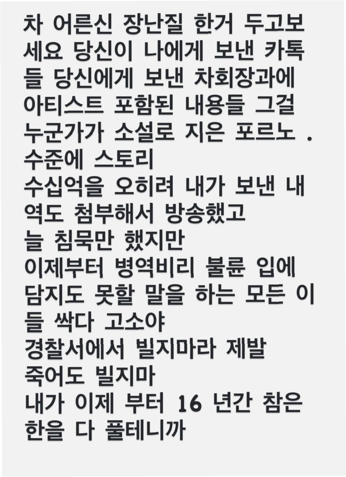 A.소속사 측에 따르면, 차준영 씨가 빅플래닛메이드 경영권을 뺏기 위해 MC몽에게 협박하여 조작된 카톡 메시지를 보낸 것으로 알려졌습니다.