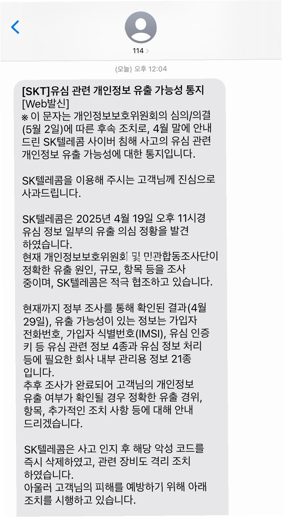 이번 SK텔레콤 해킹 사건으로 인해 가입자식별번호(IMSI), 단말기고유식별번호(IMEI), 전화번호 등 25가지 유심 정보가 유출되었습니다. 이는 매우 심각한 문제로, 개인정보가 유출되면 스미싱, 보이스피싱, 불법 스팸 등 다양한 2차 피해로 이어질 수 있습니다. 분조위는 민관합동조사단의 조사 결과와 개인정보보호위원회의 처분 내용을 바탕으로 SK텔레콤의 책임을 인정했습니다. 개보위는 SK텔레콤에게 개인정보보호법 위반 혐의로 과징금 1347억 9100만원과 과태료 960만원을 부과하는 제재 처분을 의결한 바 있습니다.
